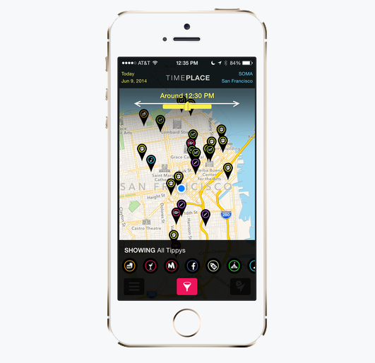The app can also help you find that cup of Starbucks, a slice at Pizza My Heart, event tickets to major events, as well as any other business establishments' offerings and activities that are open during your time slider selection. Users can then easily share "Tippys" (a unique time and place) with friends, save to their calendar, post to social channels, or save for review later.